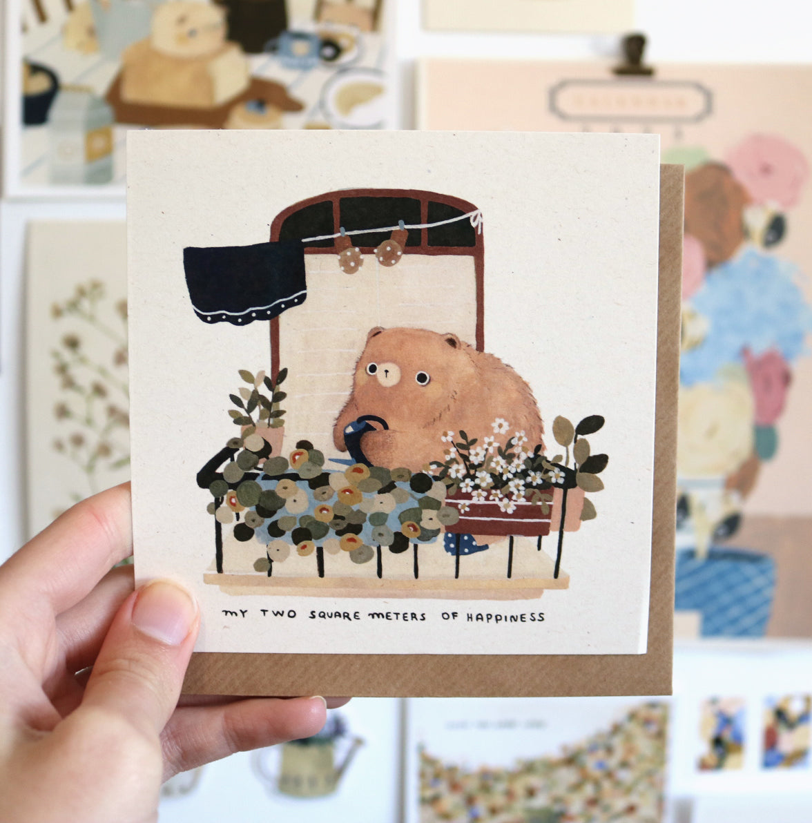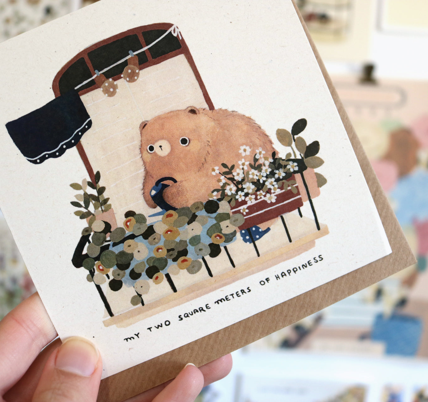 Lovingly illustrated postcard, printed on natural cardboard with birchwood structure.