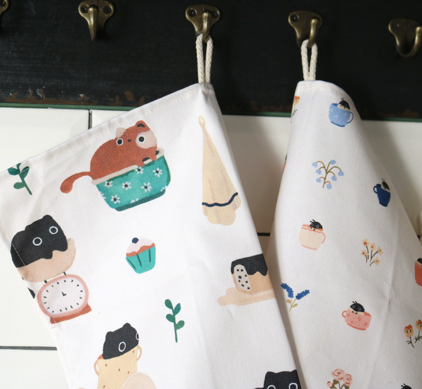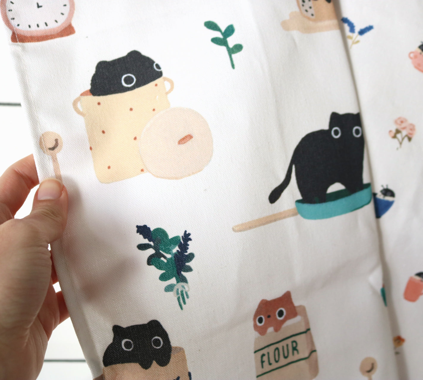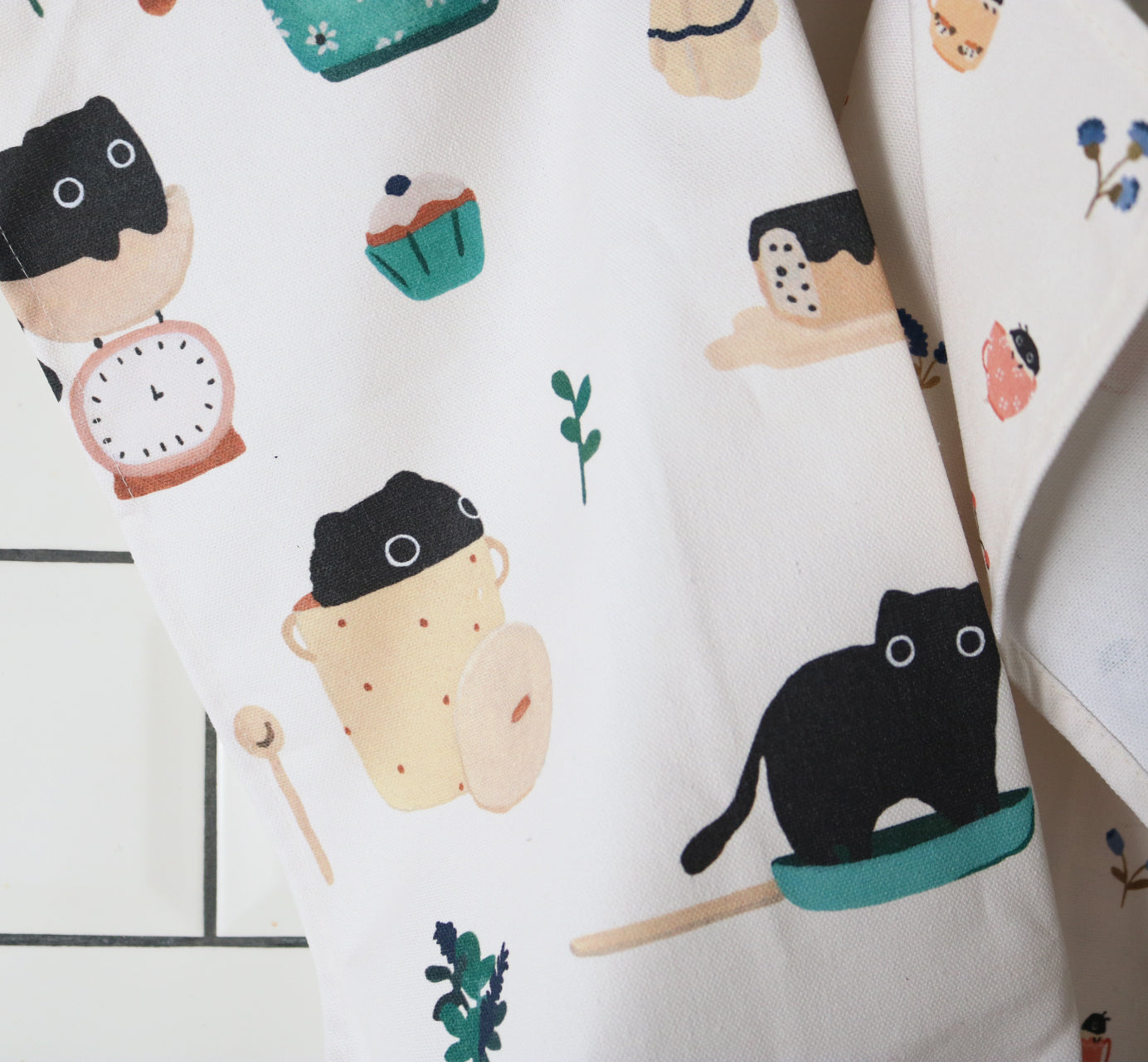 the kitchen cats tea towels are a bit cheaper, because the black cats unfortunately turn a bit grey when washed, but even grey cats have to be loved.