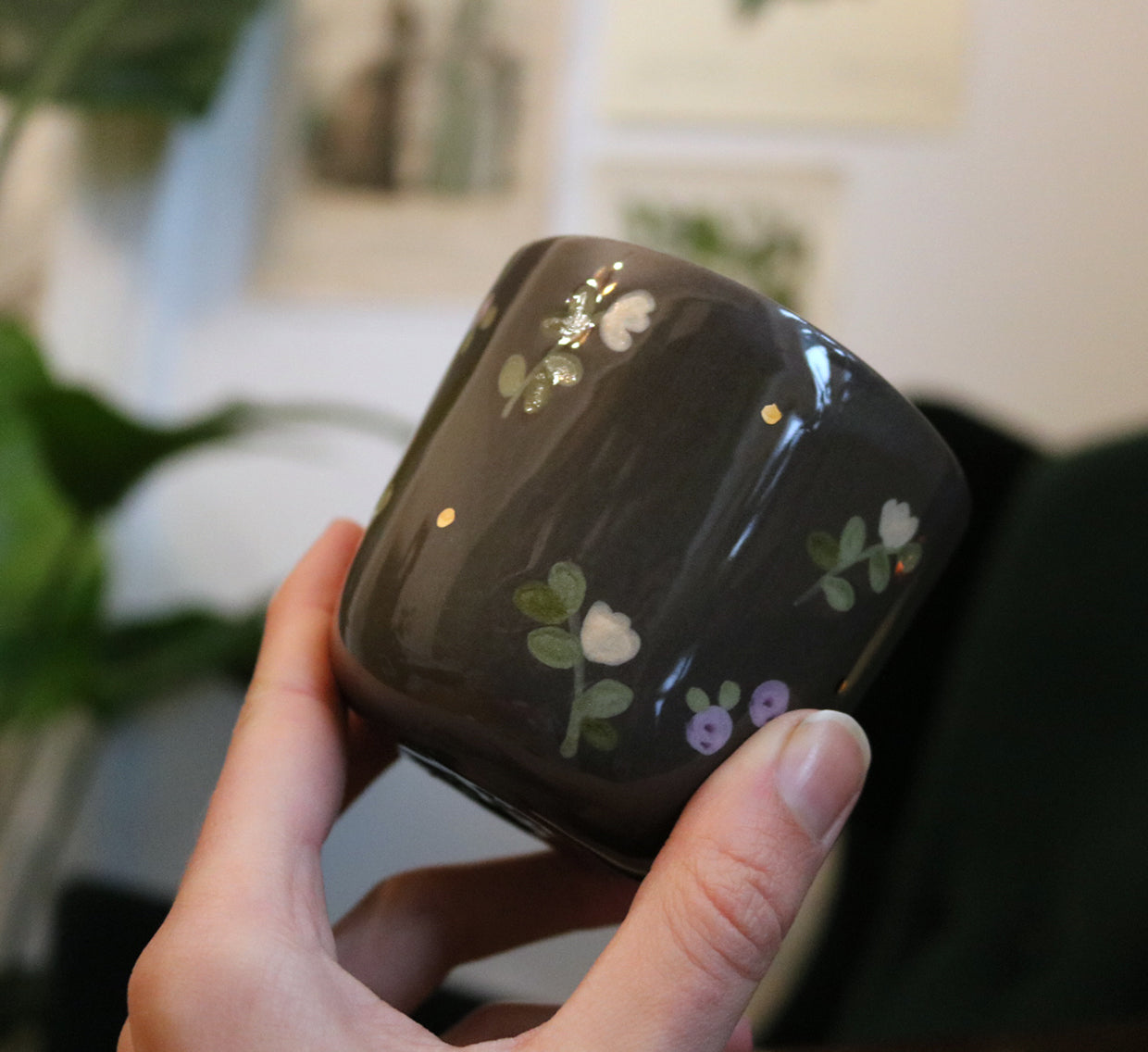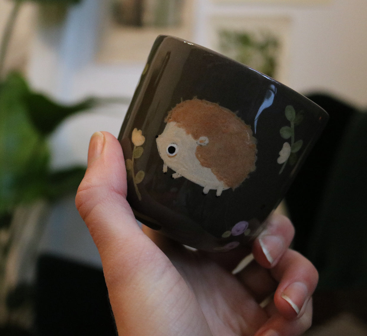 Nº131 purple rose hedgehog | DARK CUP with gold