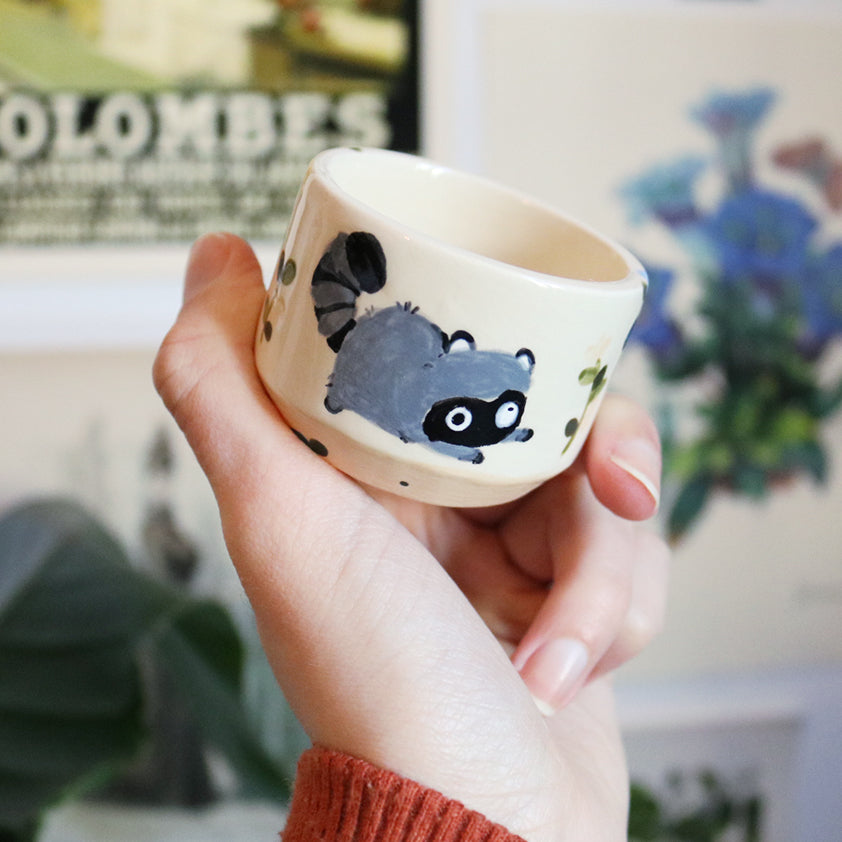 • Load image into Gallery viewer, Nº174 flower raccoon | BEIGE MINI CUP