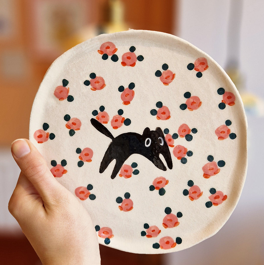 Nº423 cat & pink roses | PASTRY PLATE